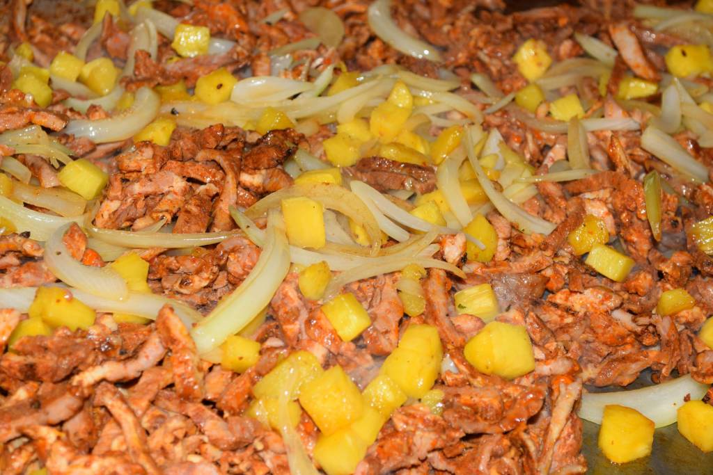 Juicy and tender pork marinated with annatto and spices finished with pineapple and sautéed onions