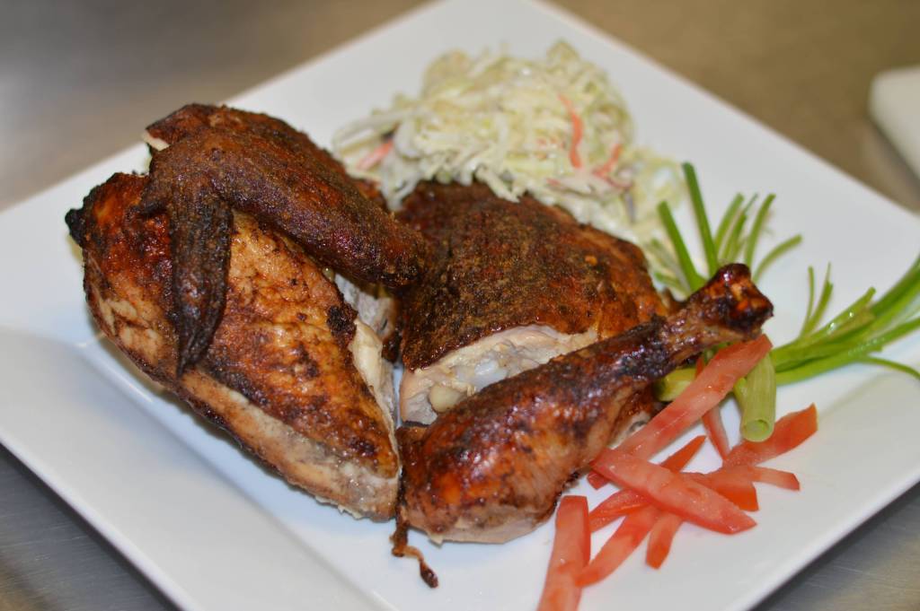 Juicy grilled or baked chicken, marinated in a blend of home-made blend of herbs, chilies and spices