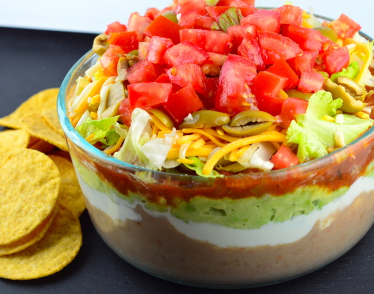 Refried beans, Sour cream, Guacamole, Chunky salsa, Lettuce, Cheese, Tomatoes and olives
