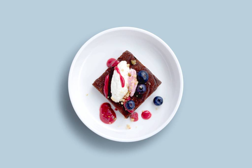 Fresh out the oven brownie filled with dark chocolate chips & walnuts