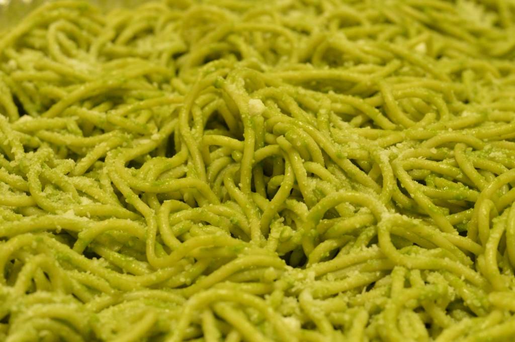Marvelous basil-cilantro pesto with parmesan cheese, hot or cold is no disappointment